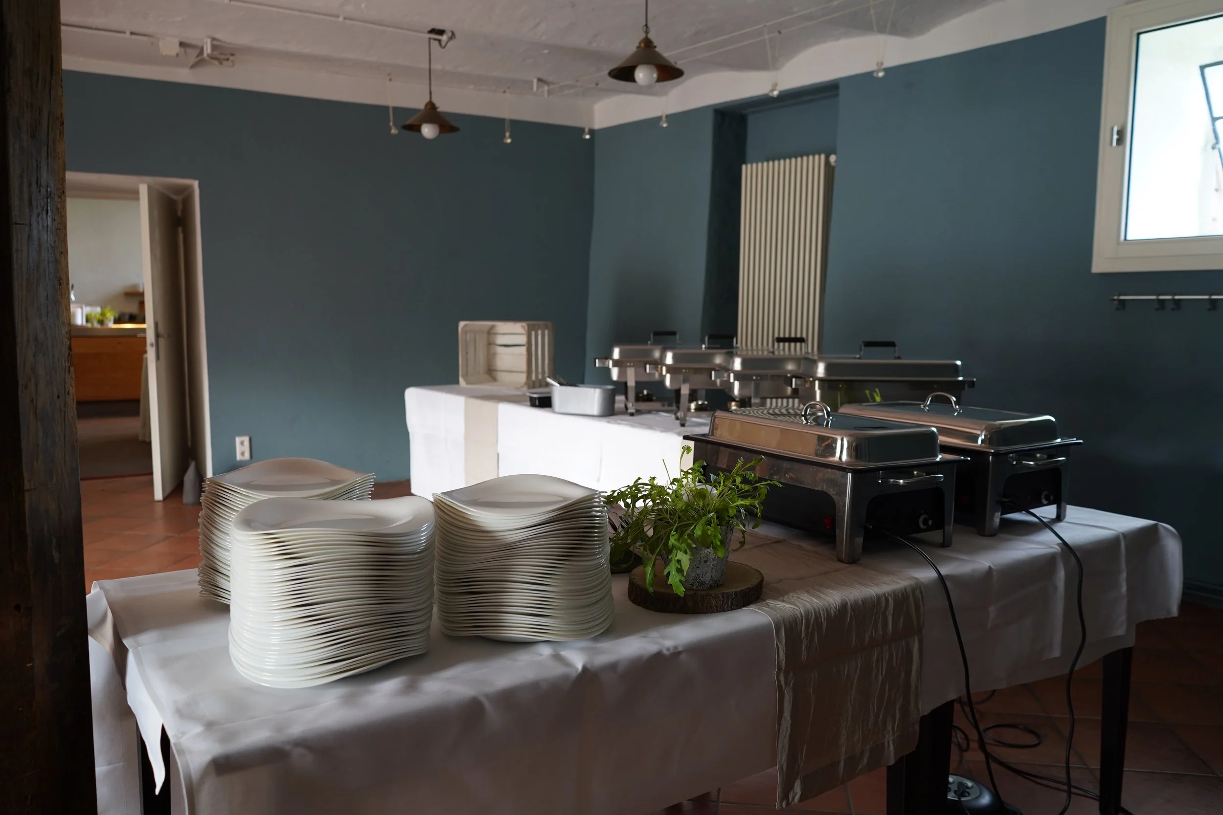 Für das Catering bieten sich regionale gastronomische Unternehmen an.  Wir beraten Sie dazu gern.